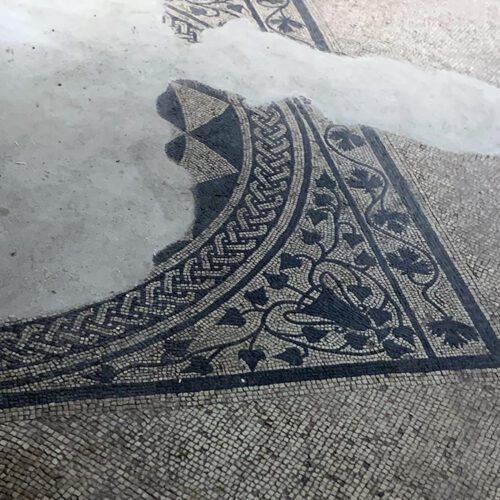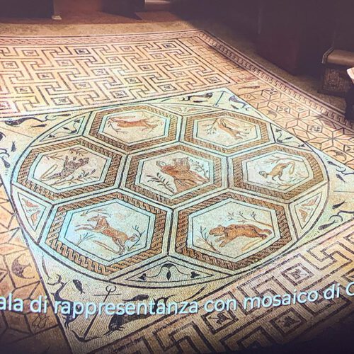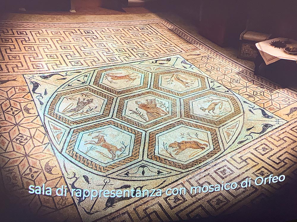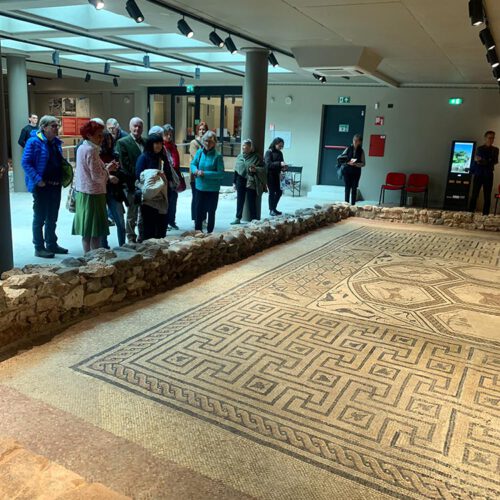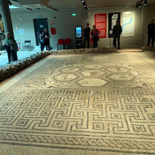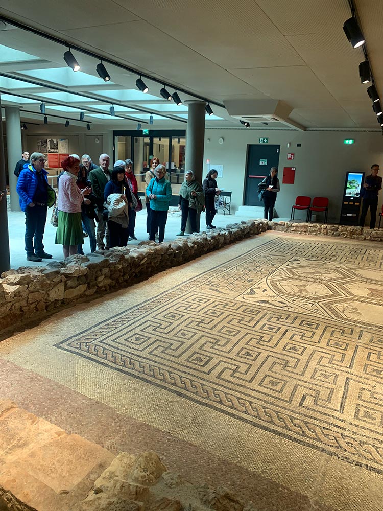 Zuerst besuchten wir die römische Orpheus-Villa (aus den ersten Jahrzehnten des 1.Jhdt. n.Chr.), die sich außerhalb der Stadtmauern von Tridentum befand. Es handelte sich um die Residenz einer angesehenen und begüterten Familie, wie die Überreste von Mosaikböden, Freskenfragmenten, beheizbaren Räumen und kostbarer Einrichtungsgegenstände bezeugen. Das Highlight ist das herrliche Bodenmosaik in einem großes Saal, das Orpheus mit der Lyra, umgeben von wilden Tieren, zeigt (das sog. Orpheus-Mosaik).