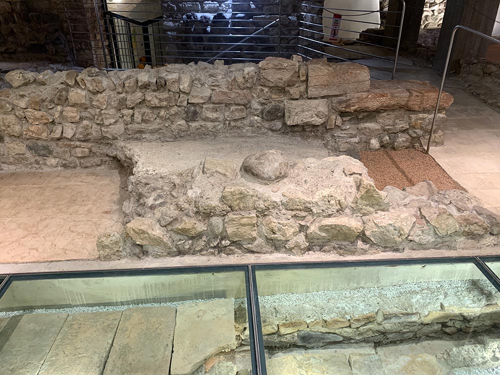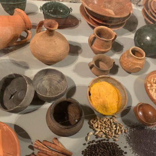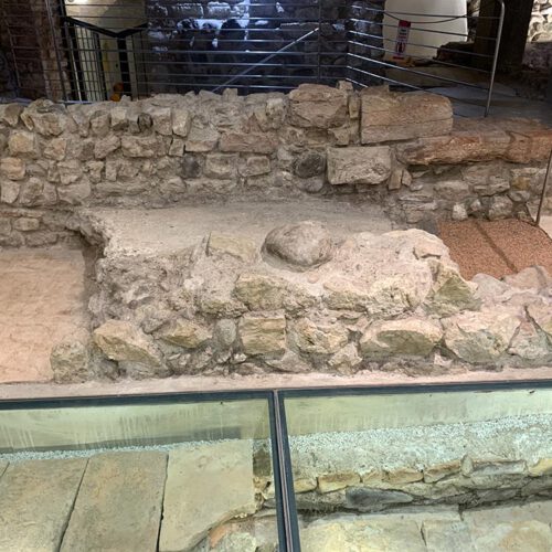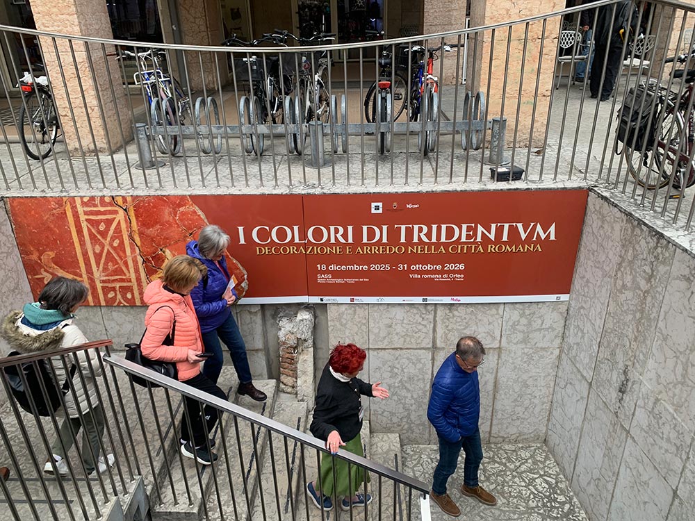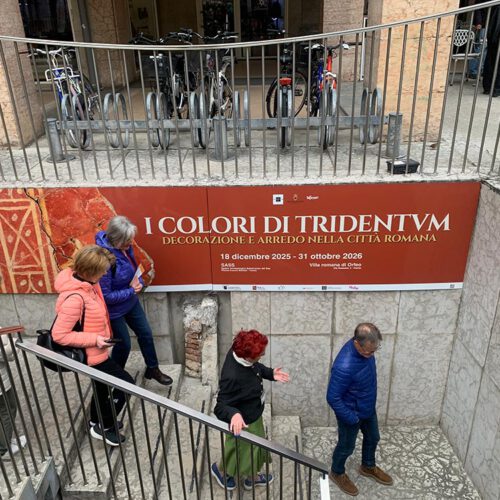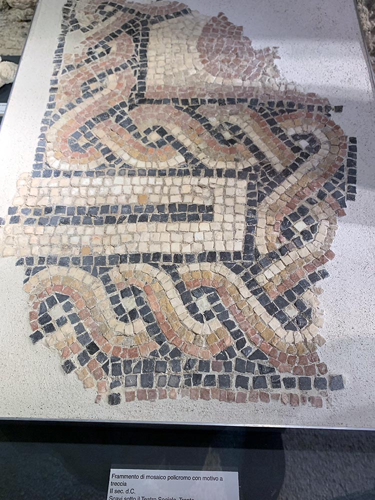Anschießend besichtigten wir, unter der Piazza Cesare Battisti, Teile des alten römischen Tridentum (1.Jhdt. n. Chr.), das Kaiser Claudius bereits 46 n.Chr. erwähnte. Offiziell heißt es „SASS-Spazio Archeologico sotterraneo del SAS“, letzteres war ein ehemaliges Stadtviertel , welches in den 30er Jahren abgerissen wurde. Tridentum war für die Römer eine strategisch wichtige, fast quadratisch angelegte Stadt, welche im Norden von der Etsch, und an den anderen Seiten von einer Stadtmauer umgeben war. Wir konnten eine gepflasterte Straße, Stücke von Häusern mit Resten von Mosaiken und Handwerksläden bestaunen. Als Abschluß besichtigten wir die Sonderausstellung „Austern und Wein“, welche uns Einblicke in die Ernährung und Eßgewohnheiten der alten Römer bot.